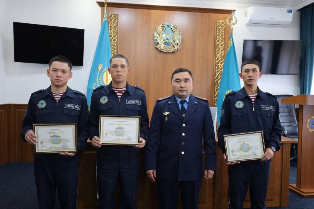 Приказом начальника ДЧС г. Астаны Марата Кульдикова за мужество и самоотверженность, проявленные при спасении человеческой жизни на воде, рядовые солдаты оперативного батальона Национальной гвардии РК Нариман Мырзахметов, Дамир Мукашов и Давид Корсунов были награждены Благодарственными письмами.