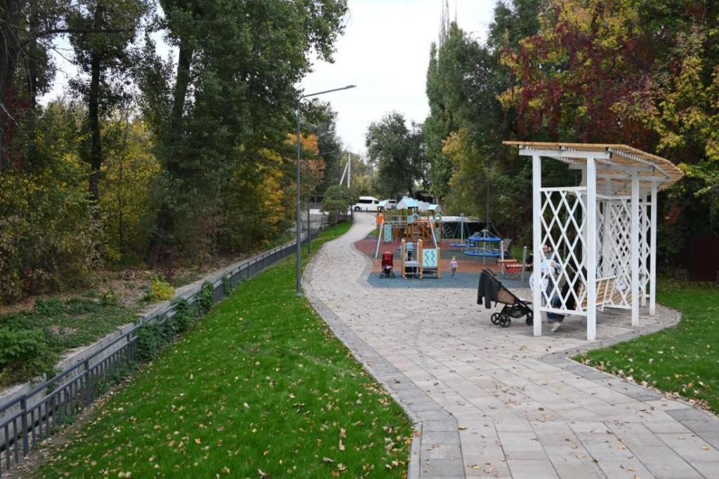 В Турксибском районе Алматы завершено благоустройство русла реки Карасу и строительство новой досуговой зоны по улице Таштитова.