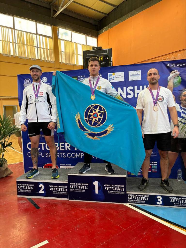Сотрудник Службы пожаротушения и аварийно-спасательных работ ДЧС Карагандинской области Александр Комаров завоевал золотую медаль Чемпионата Мира по гиревому спорту, который проходит в Греции, на острове Корфу, с 10 по 15 октября.