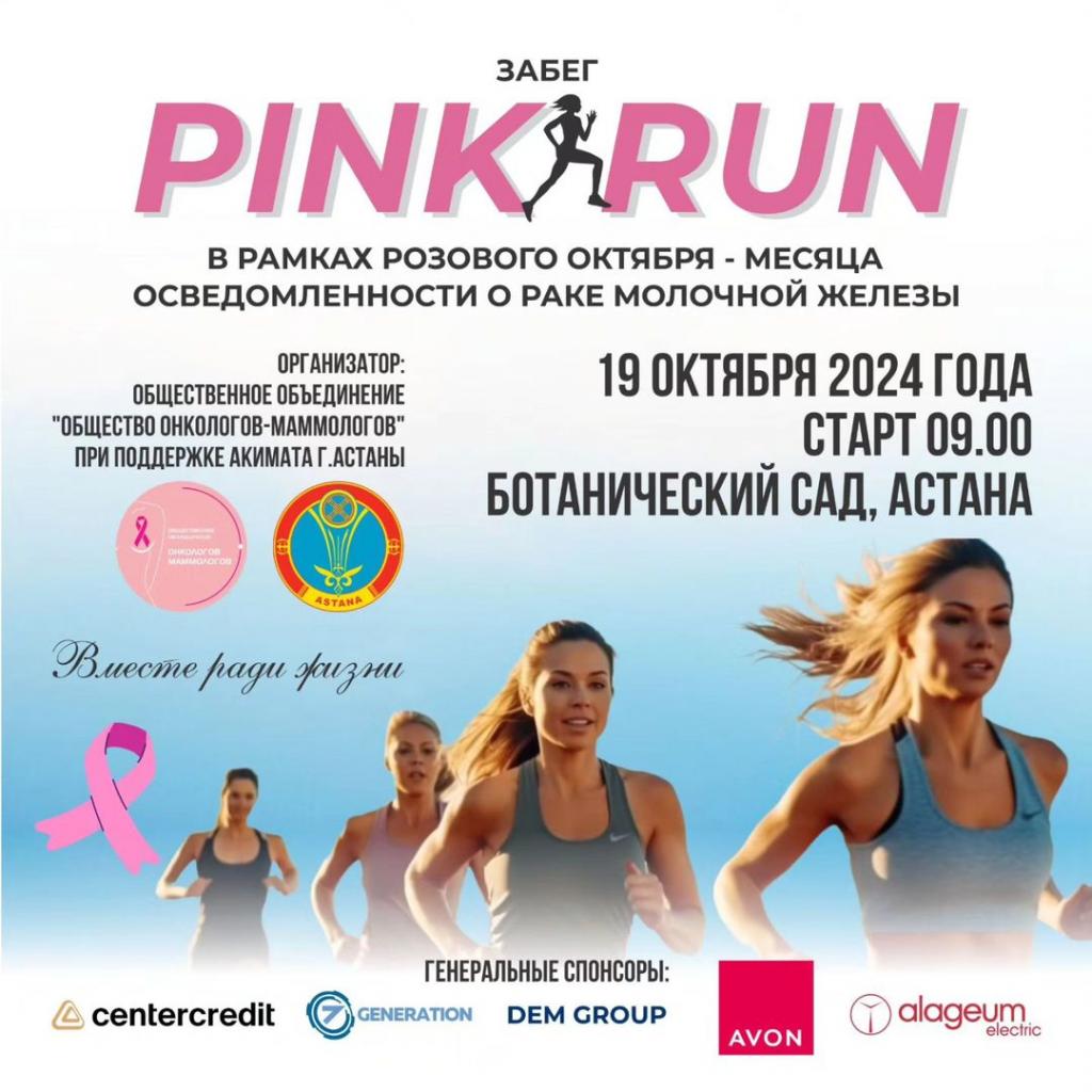 В рамках месяца борьбы с раком молочной железы, известного в мире как «Розовый октябрь», в Астане состоится забег Pink Run, сообщает Optimism.kz.
