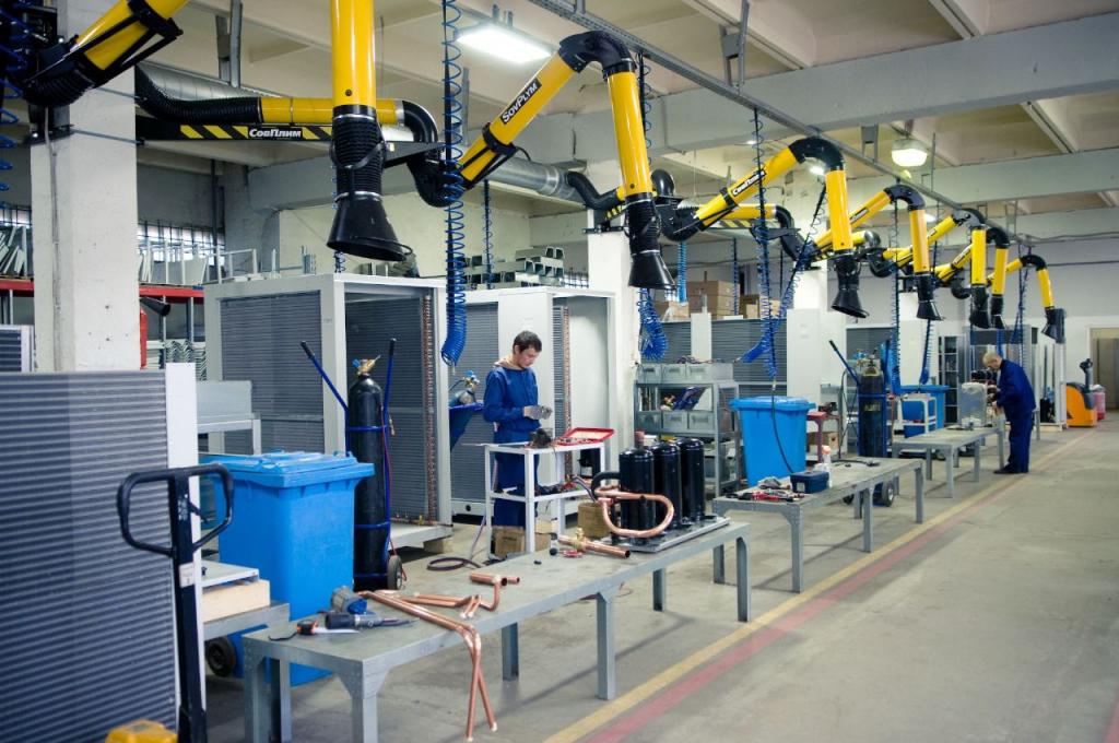 На следующем этапе специалисты ознакомились с линиями сборки оборудования специального назначения, включая взрывозащищённые установки, бесканальные крышные системы и установки с встроенным тепловым насосом, а также оборудование для бассейнов и аквапарков. Обучение продолжилось семинаром по программному подбору климатического оборудования, на котором рассматривались решения для общеобменной и противопожарной вентиляции, холодильное оборудование и прецизионные кондиционеры.