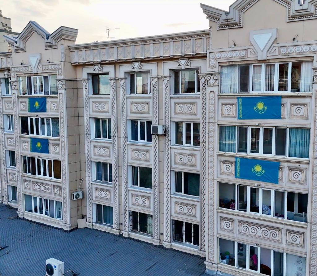 В Астане на балконах многоэтажных жилых домов и зданиях вывесили порядка 1000 государственных флагов в рамках челленджа » Менің елім — Менің туым!», сообщает Optimism.kz.