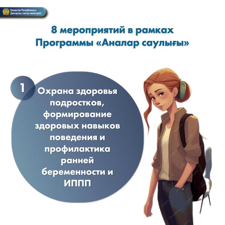 Министерством здравоохранения в целях сохранения репродуктивного здоровья подростков и укрепления здоровья женщин фертильного возраста разработана программа «Аналар саулығы», состоящая из 8 мероприятий.