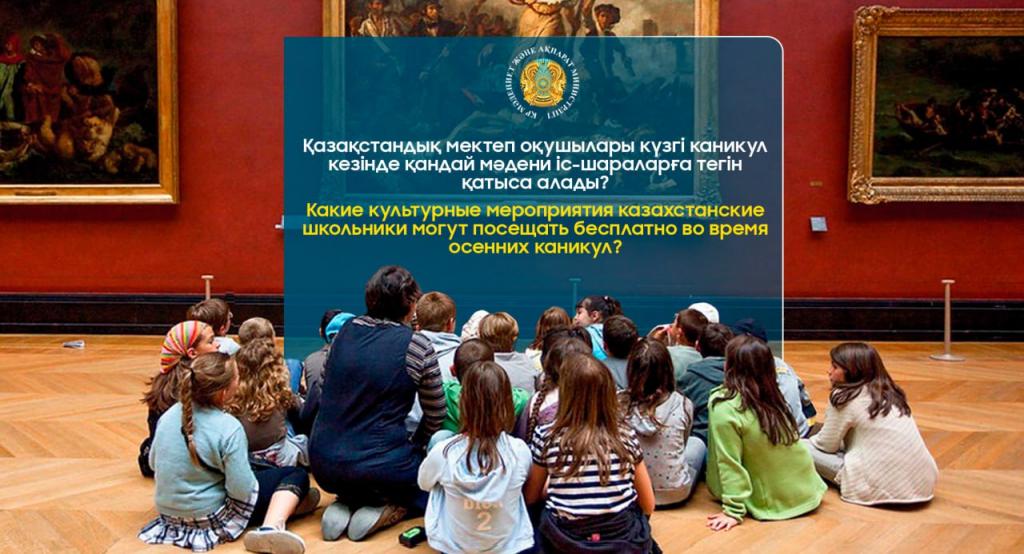 Центральный государственный музей РК приглашает школьников посетить выставки «Жеті Қазына», «Казахские Великие учёные и просветители Казахстана». Для детей будут проведены музейные уроки «Қазақстан – менің Отаным», «Абылай хан» из цикла «Правители казахского ханства», «Казахская национальная одежда», «Мой любимый персонаж – Алдар Косе» в рамках проекта «Қазақ халық фольклоры: қазақ ертегілер әлемінде».