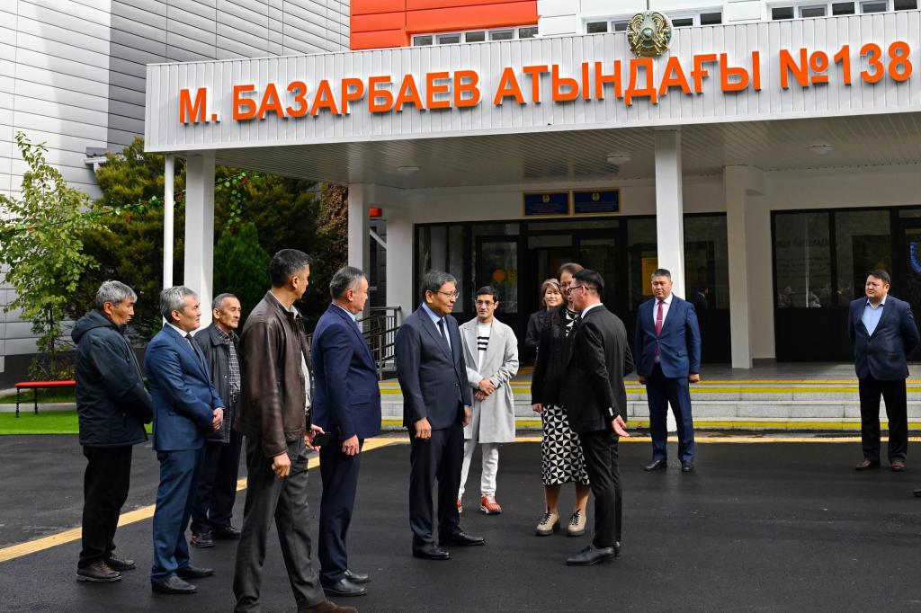 Аким Алматы Ерболат Досаев в ходе рабочего объезда осмотрел отремонтированную школу №138 в мкр. Көктем-1 Бостандыкского района.