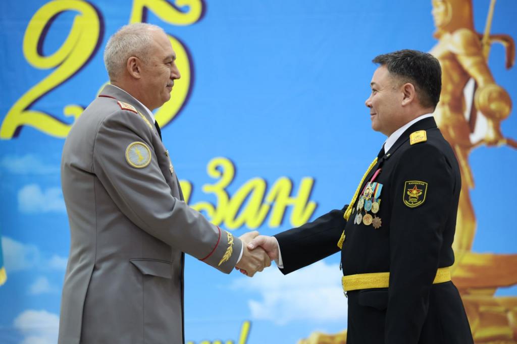 Приказом министра ведомственными наградами – медалями «Ел қорғаны» поощрены пять, «Бітімгершілік операцияларына қатысқаны үшін» – 11 военнослужащих. 37 офицерам присвоены очередные воинские звания досрочно.