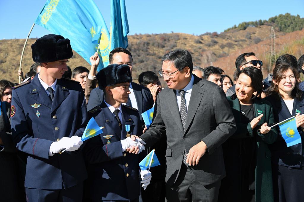 В торжественной церемонии поднятия флага на площадке у ледового катка «Медеу» приняли участие аким Алматы Ерболат Досаев, общественные деятели, депутаты маслихата, представители неправительственных и молодежных организаций, а также рядовые горожане.