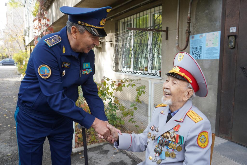 Долгожителя с юбилеем поздравили военнослужащие управления по делам обороны Медеуского района и руководство Военно-инженерного института радиоэлектроники и связи.