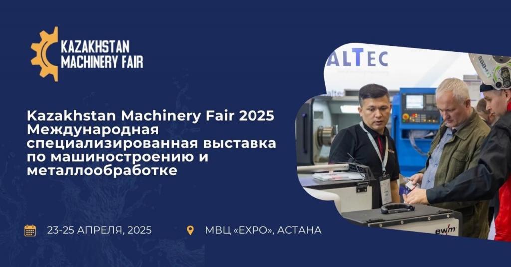С 23 по 25 апреля 2025 года пройдет 6-я Международная специализированная выставка по машиностроению и металлообработке — Kazakhstan Machinery Fair 2025.