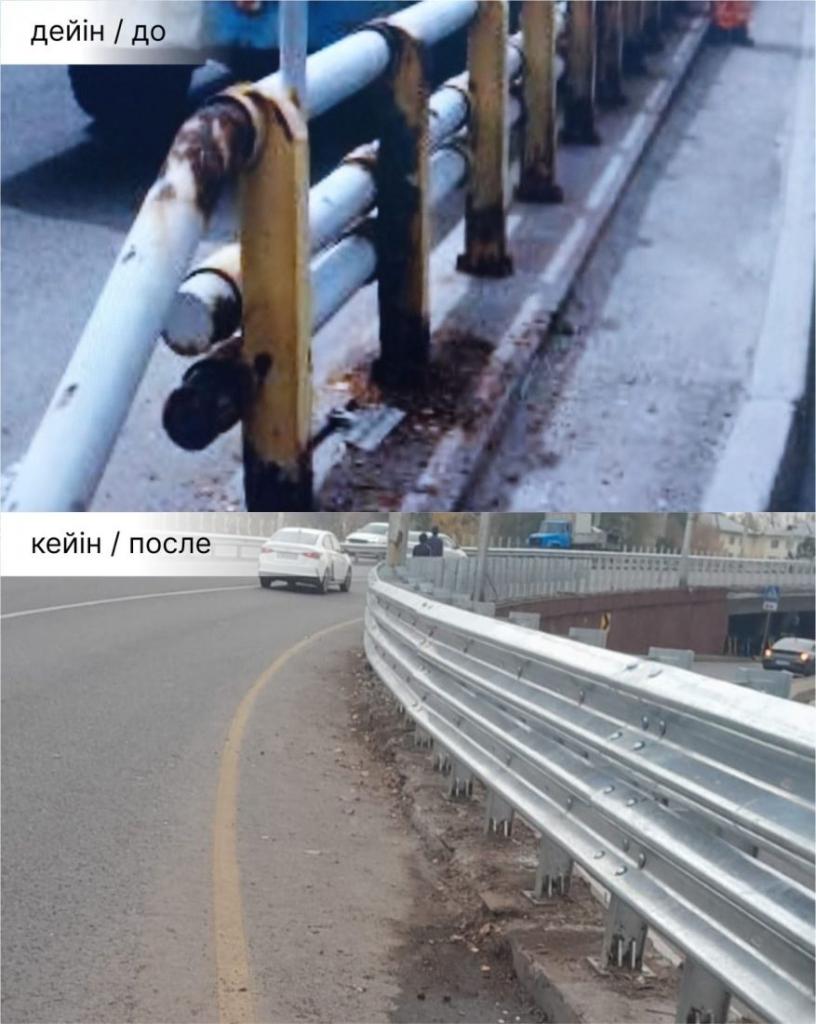 Ранее подобное ограждение было установлено на эстакаде по проспекту Назараева севернее проспекта Райымбека.