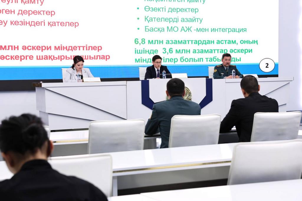 — Министерством обороны совместно с другими государственными органами проделана большая работа по цифровой трансформации, которая постепенно приходит во все сферы жизни каждого человека, и со временем она будет становиться все более явной и заметной. Уже сегодня, к примеру, такие услуги, как получение отсрочки или постановки и снятия с учета в местных органах военного управления не требуют личного присутствия в военкомате. Все эти услуги можно получить удаленно в личном кабинете гражданина на E-gov. За 2024 год в автоматическом режиме отсрочку от призыва получили 29 648 граждан – отметил Дархан Ахмедиев.
