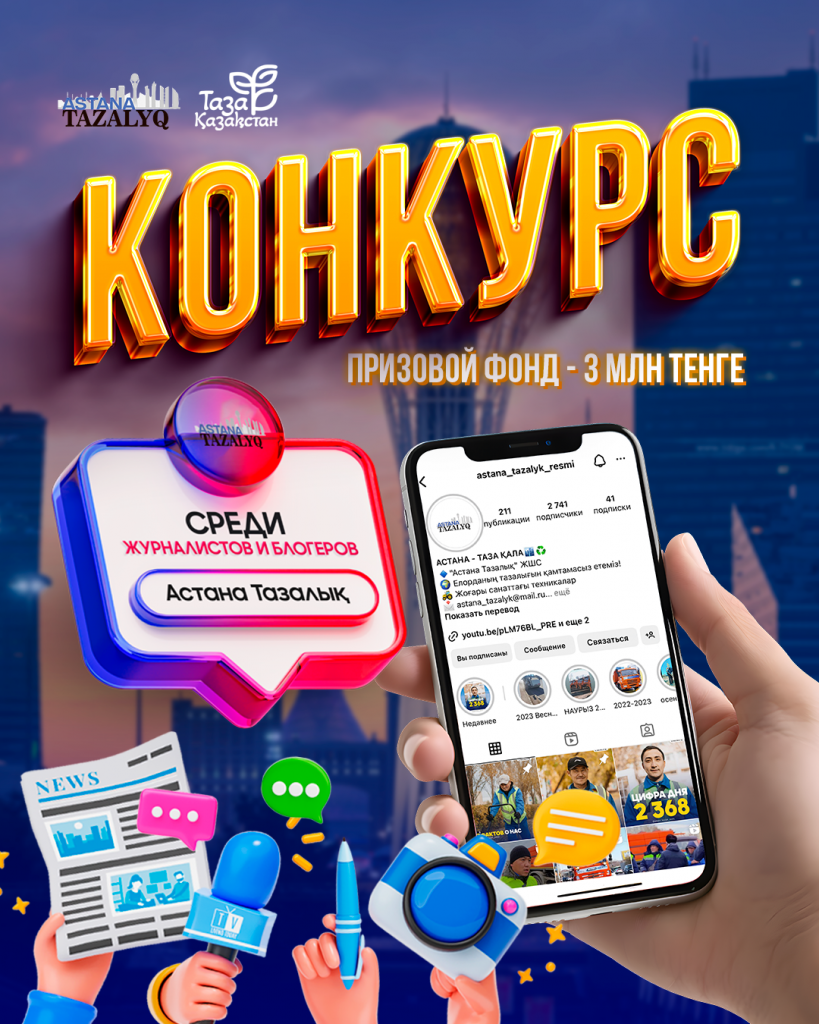ТОО «Астана Тазалық» проводит конкурс среди представителей СМИ «Таза Қазақстан — таза Астана», передает Optimism.kz.