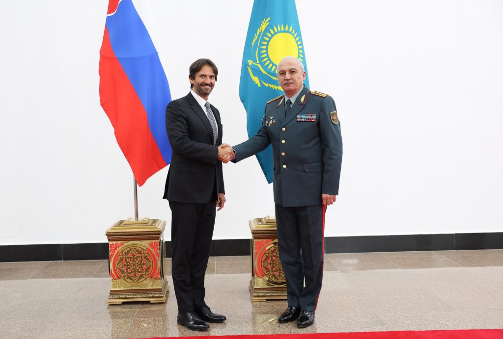 Министр обороны Казахстана генерал-полковник Руслан Жаксылыков и заместитель премьер-министра – министр обороны Словацкой Республики Роберт Калиняк обсудили вопросы двустороннего сотрудничества, включая военное образование и миротворческую деятельность.