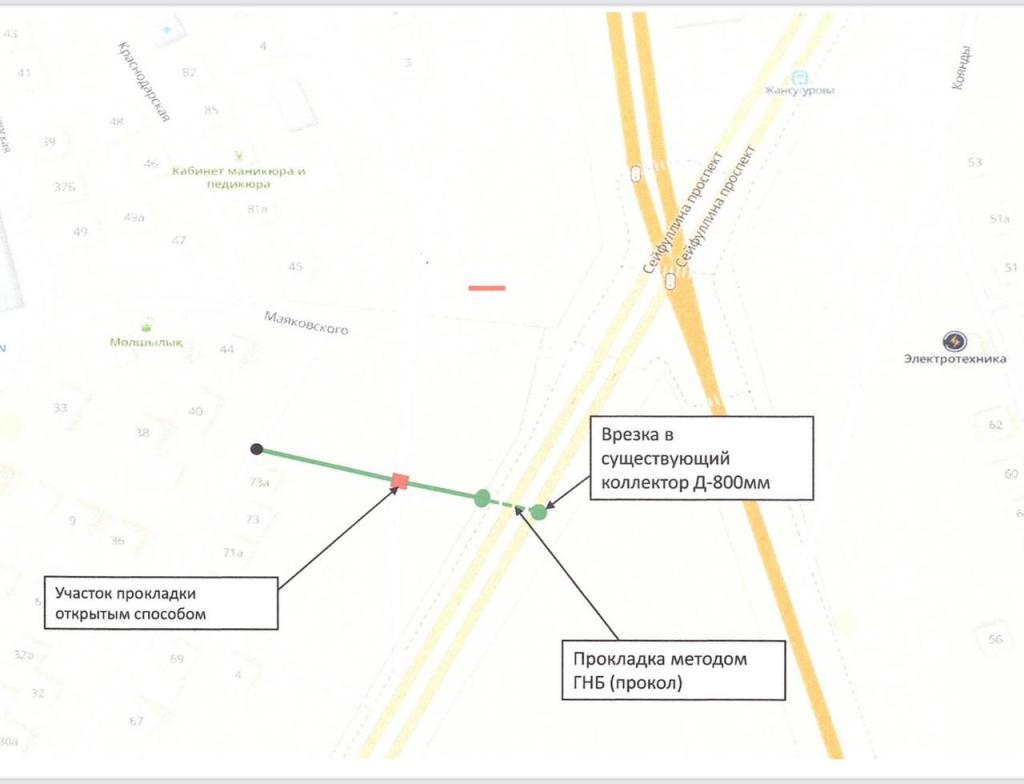 С 23:00 8 ноября до 21:00 10 ноября на временной дороге у съезда с ул. Жансугурова на проспект Сейфуллина будет временно ограничено движение транспорта. Ограничение связано с подключением канализационных сетей на улицах Краснодарской и Черноморской к городскому коллектору.