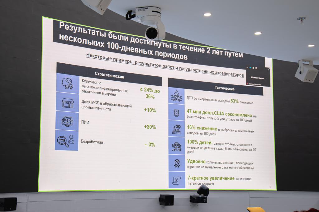В настоящее время на площадке Национального Акселератора НПО разрабатываются и реализуются 12 стратегических инициатив, включая сферы здравоохранения, просвещения, развития транспортно-логистической, энергетики, водной отрасли, промышленности и строительства, цифровизации, иноваций и др.