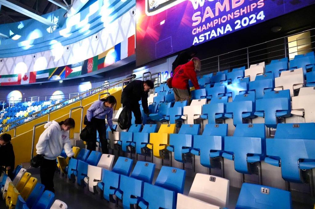 После завершения чемпионата мира по самбо во Дворце единоборств имени Жаксылыка Ушкемпирова болельщики проявили ответственность и убрали за собой мусор на трибунах, передает официальный сайт акимата.