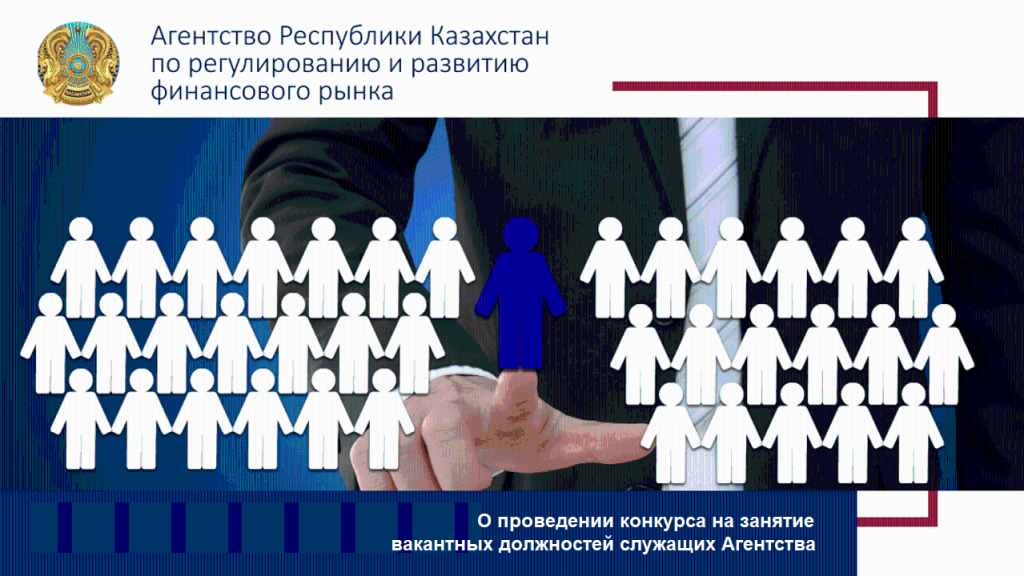 Агентство Республики Казахстан по регулированию и развитию финансового рынка (далее – Агентство) объявляет о проведении конкурса на занятие вакантных должностей служащих Агентства.