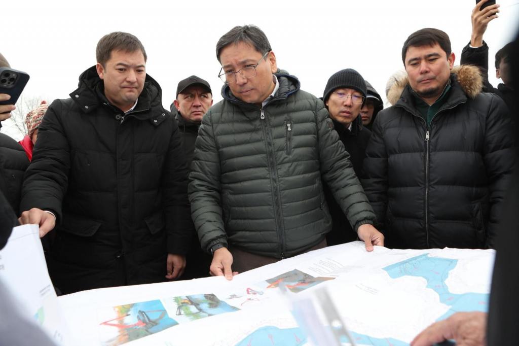 Во время рабочего объезда Алатауского района аким Алматы Ерболат Досаев ознакомился с ходом благоустройства сквера по ул. Баганалы Орда в мкр. Карасу.