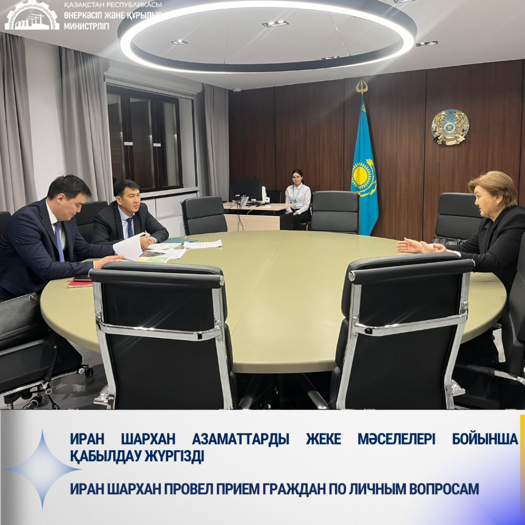 Сегодня вице-министр промышленности и строительства РК Иран Шархан провел прием граждан по личным вопросам в Центре приема граждан Правительства.