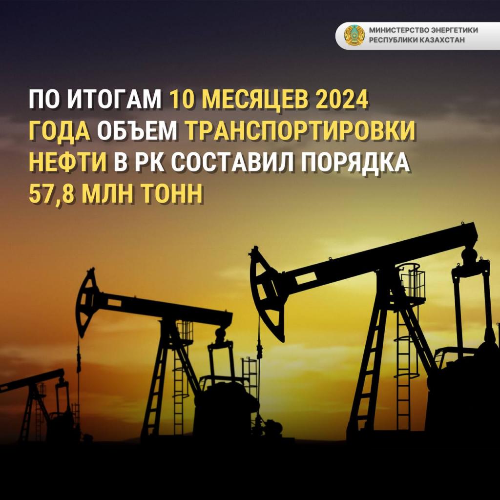 Также, по итогам 10 месяцев транзит нефти через территорию РК составил 8,4 млн. тонн, из них по маршруту Российская Федерация – Китайская народная республика 8,2 млн. тонн, Российская федерация – Республика Узбекистан 217 тыс. тонн нефти.