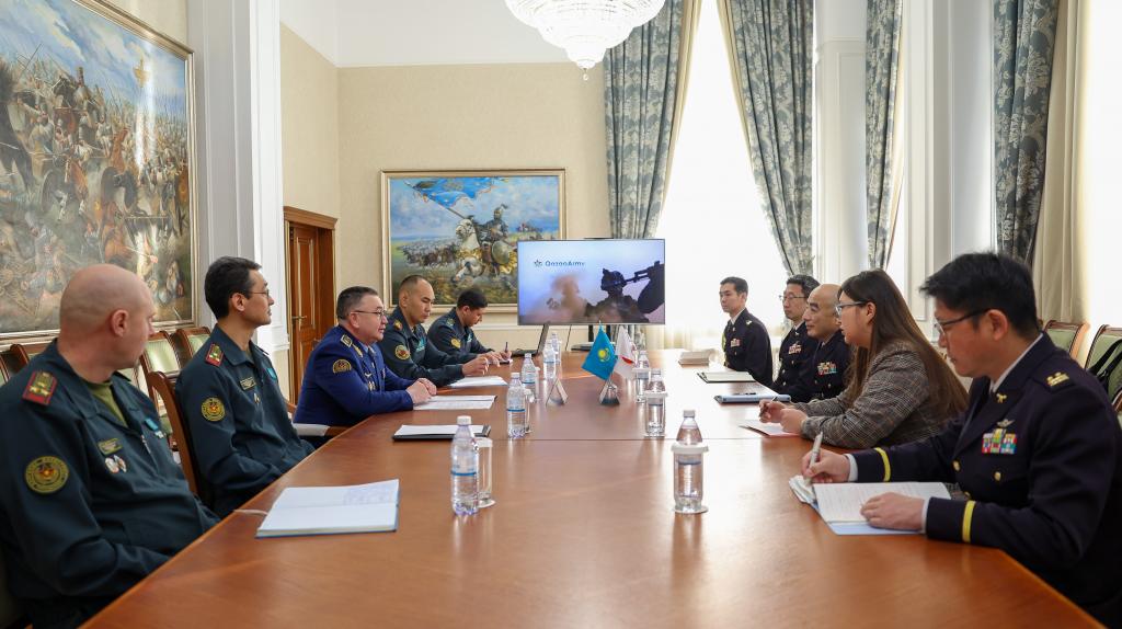 В оборонном ведомстве состоялась протокольная встреча начальника Департамента войск РХБ защиты и экологической безопасности Генерального штаба Вооруженных сил Казахстана полковника Ержана Кулмагамбетова с японскими военнослужащими.