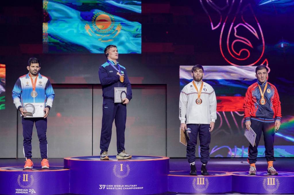 Ефрейтор Мейржан Аширов стал чемпионом мира по вольной борьбе в весовой категории 70 кг. Показав свое превосходство в поединках с борцами из России, Монголии и Ирана, в решающей схватке с индийским спортсменом он выиграл со счетом 6:2.