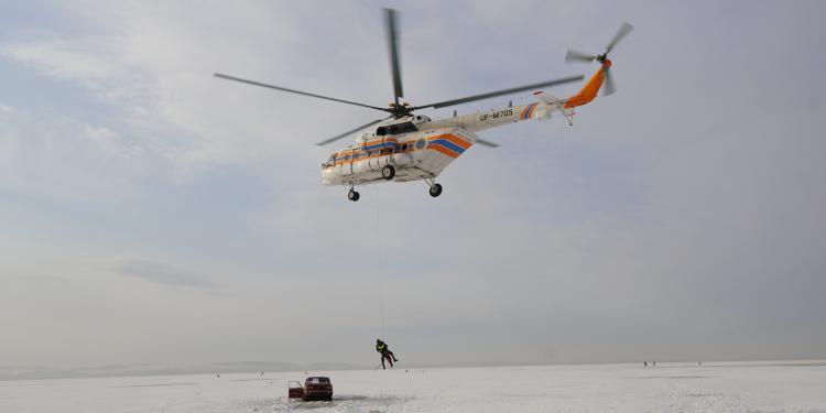 Последняя локация учений – набережная озера Копа, где по легенде потерялся житель города, отправившийся на рыбную ловлю. Поиски велись силами оперативно-спасательного отряда, полиции и волонтёров. Был применен беспилотный летательный аппарат. Отработаны действия по спасению пассажиров автомобиля, провалившегося под лед. С помощью плавсредств, один человек силами оперативно-спасательного отряда был вызволен из воды и передан в бригаде скорой помощи. Второй был эвакуирован с помощью вертолета.