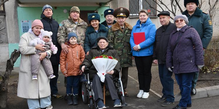 От имени министра обороны генерал-полковника Руслана Жаксылыкова и начальника Алматинского регионального гарнизона генерал-майора Алмаза Джумакеева ветерану были вручены поздравительные адреса и памятные подарки.