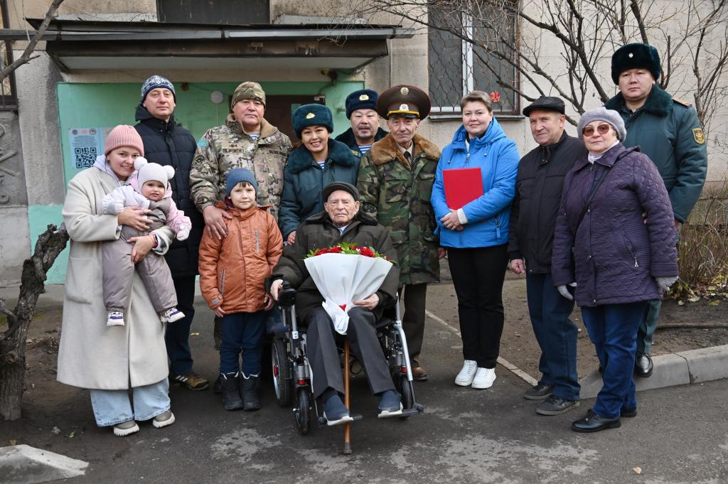 От имени министра обороны генерал-полковника Руслана Жаксылыкова и начальника Алматинского регионального гарнизона генерал-майора Алмаза Джумакеева ветерану были вручены поздравительные адреса и памятные подарки.