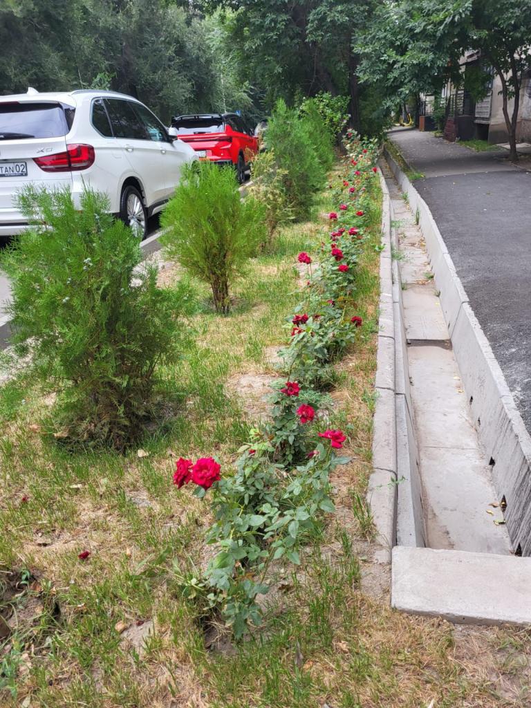 Кроме того, он высадил туи и розы по кругу и отгородил участок по периметру. Несколько лет назад Юсуф переключился на газон вдоль дороги, районный акимат убрал сухостой.