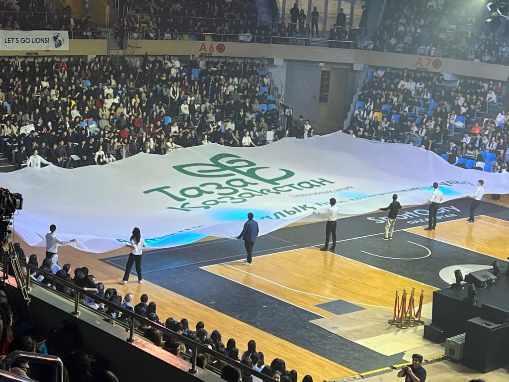 Студенты Maqsut Narikbayev University провели необычную акцию в рамках посвящения в студенты, развернув на сцене 25-метровый флаг «Таза Қазақстан», сообщает Optimism.kz.