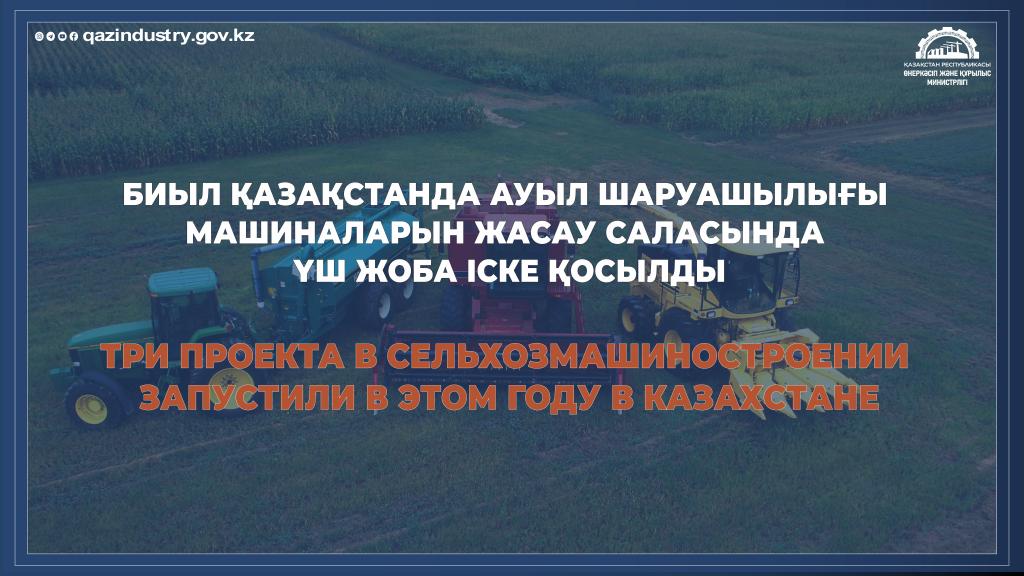 В этом году в Казахстане заработали три новых производства в секторе сельскохозяйственного машиностроения. Их общая стоимость — 5,7 млрд тенге. Реализация проектов позволила создать 172 постоянных рабочих места. Об этом сообщила дирекция мониторинга и анализа реализации проектов КЦИЭ «QazIndustry».