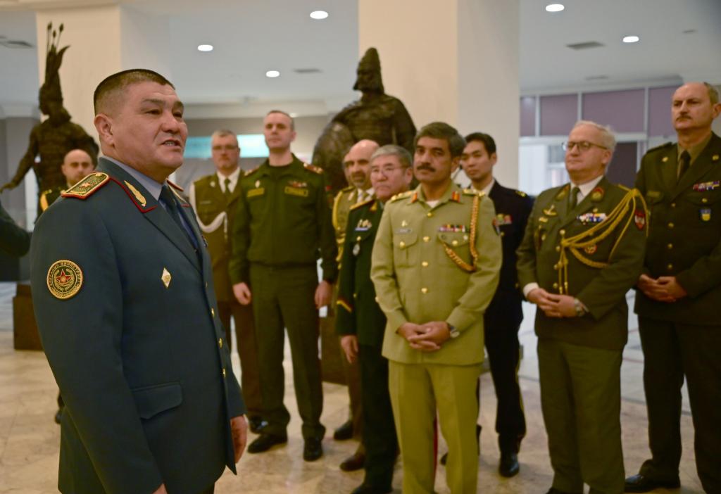 В мероприятии, состоявшемся в Национальном военно-патриотическом центре Вооруженных сил РК, приняли участие представители военно-дипломатического корпуса, аккредитованного в Казахстане, министерств обороны, промышленности и строительства.