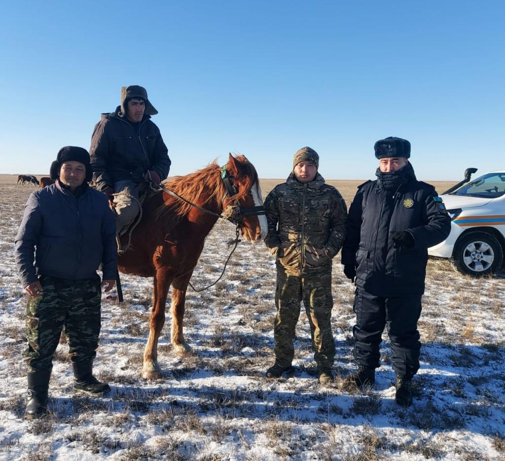 Ночью 7 декабря в с.Сага Джангельдинского района Костанайской области силами ДЧС, ДП и родственников проводились поиски мужчины 1994 г.р., который днем 6 декабря выехал верхом на лошади на поиски скота в неизвестном направлении и не вернулся. В 20 км от с.Сага на открытой территории поисковой группой пропавший найден вместе с табуном.