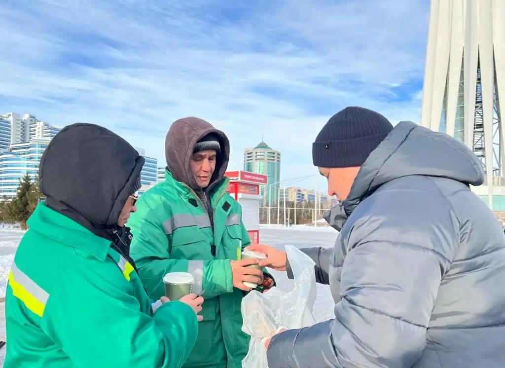 «Сегодня совместно с местными предпринимателями раздаем горячий чай и еду работникам коммунальных служб, которые трудятся в круглосуточном режиме. Это наша маленькая забота о тех людях, чья работа часто остаётся незамеченной, но она крайне важна для города и общества. Благодаря их труду наш город остается чистым и комфортным для всех», — отметил руководитель отдела внутренней политики акимата района Есиль Али Жолтабар.