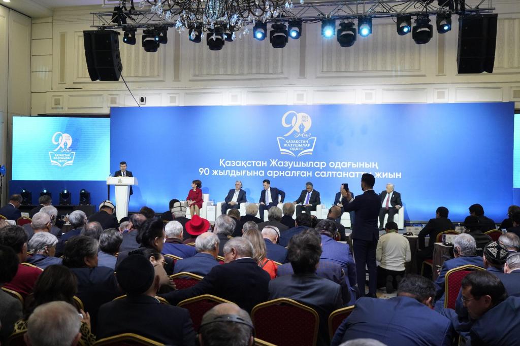 Сегодня в Алматы прошло торжественное собрание, посвященное 90-летию Союза Писателей Казахстана. В нем приняли участие Государственный советник РК Ерлан Карин, министр культуры и информации Аида Балаева, генеральный секретарь Международной организации ТЮРКСОЙ Султан Раев, президент Евразийского союза писателей Уфук Тузман.