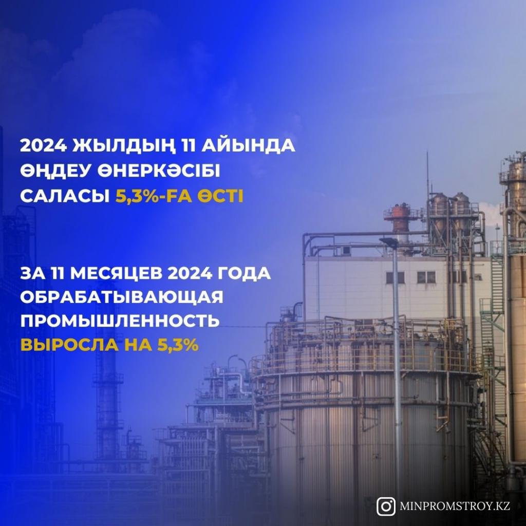 По итогам 11 месяцев в основных секторах обрабатывающей промышленности наблюдается положительная динамика, рост составил 5,3%. Об этом сообщил в ходе заседания Правительства вице-министр промышленности и строительства РК Олжас Сапарбеков. По курируемым Министерством отраслям объем производства вырос на 6,1%.