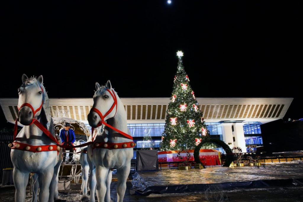 Жителей и гостей города, посетивших площадь имени Абая, будут встречать карета Золушки, Пряничный человек и другие сказочные персонажи-МАФы. Масштабные и яркие фотозоны, сверкающие фонтаны и другие инсталляции создадут незабываемую праздничную атмосферу, где каждый сможет сделать памятные фотографии и снять новогоднее видео.