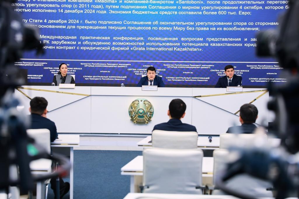 По делу Стати: во исполнение поручения Главы государства, заинтересованными государственными органами был урегулирован спор со сторонами Стати. Так, 4 декабря 2024 г. было подписано Соглашение об окончательном урегулировании спора. Это является основанием для прекращения текущих процессов по всему миру без права на их возобновления. Следует отметить, что урегулирование не потребовало бюджетных затрат, а также активы Национального фонда РК, хранившиеся у шведских судебных исполнителей на сумму около $70 млн были возвращены в пользу Национального Банка РК.