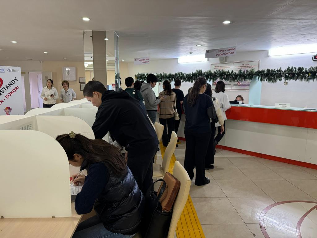 Неравнодушные жители Астаны выстаиваются в очереди в столичном Центре крови, чтобы сдать кровь для нуждающихся в ней пациентов, выживших при крушении самолета под Актау.