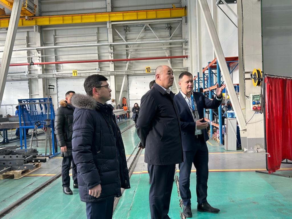Сегодня Министр промышленности и строительства РК Канат Шарлапаев прибыл в ТОО «Штадлер Казахстан».