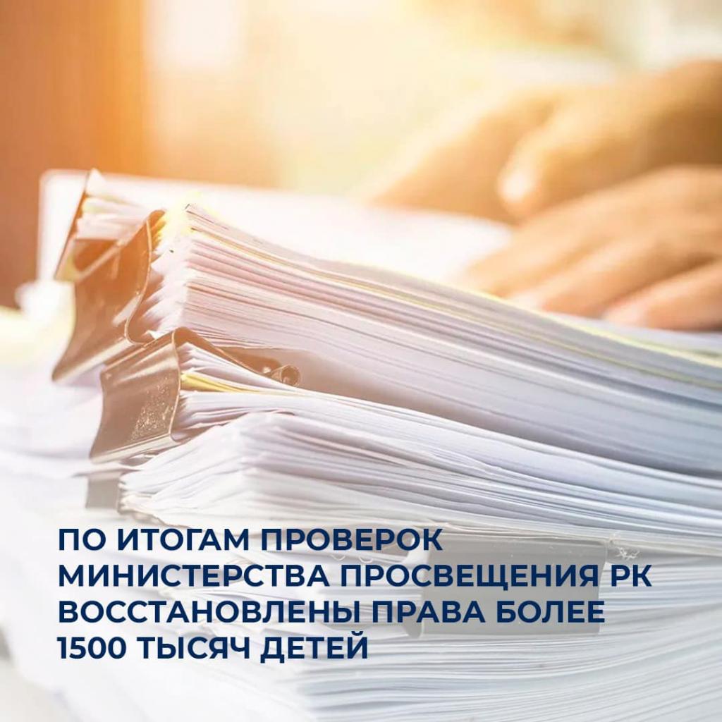 Благодаря принятым мерам Министерство просвещения РК обеспечило восстановление следующих прав более 1500 тысяч детей: