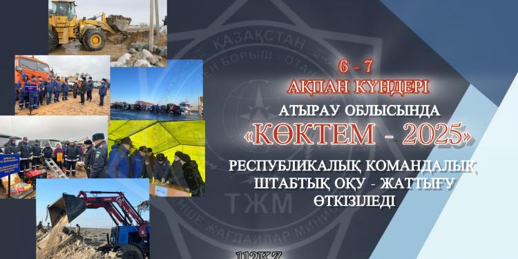 6-7 февраля 205 года в южных и западных регионах страны пройдет 1-ый этап Республиканского командно-штабного учения «Коктем-2025» на тему «Подготовка органов управления, сил и средств Государственной системы гражданской защиты к действиям при ликвидации ЧС в условиях паводкового периода».