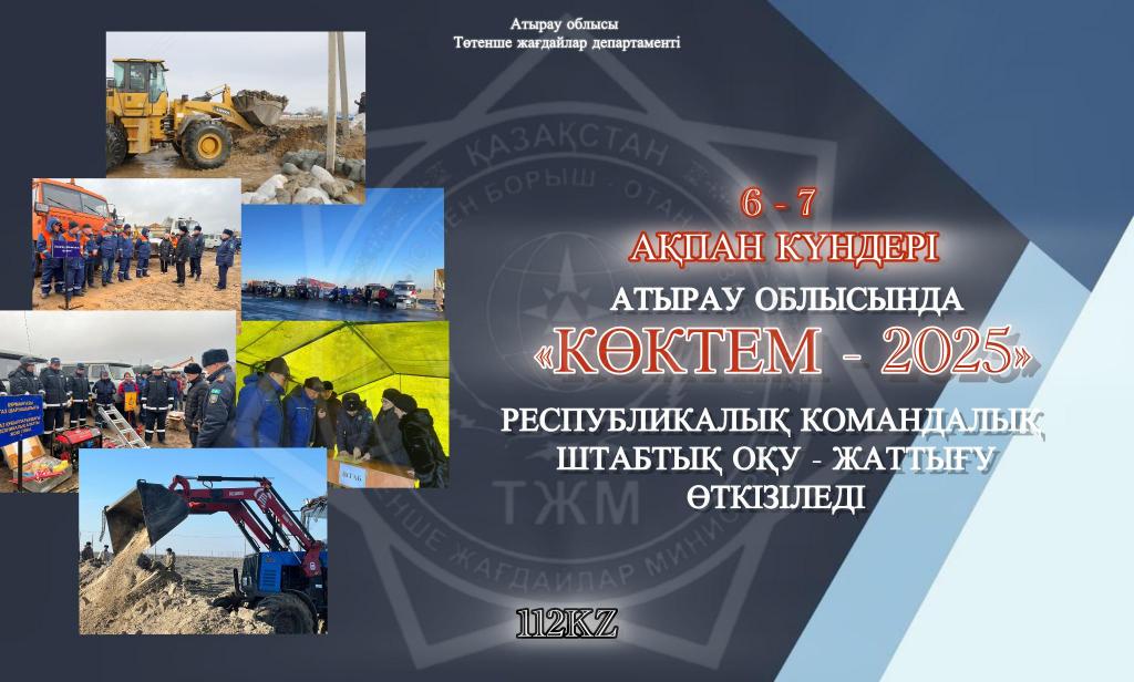 6-7 февраля 205 года в южных и западных регионах страны пройдет 1-ый этап Республиканского командно-штабного учения «Коктем-2025» на тему «Подготовка органов управления, сил и средств Государственной системы гражданской защиты к действиям при ликвидации ЧС в условиях паводкового периода».