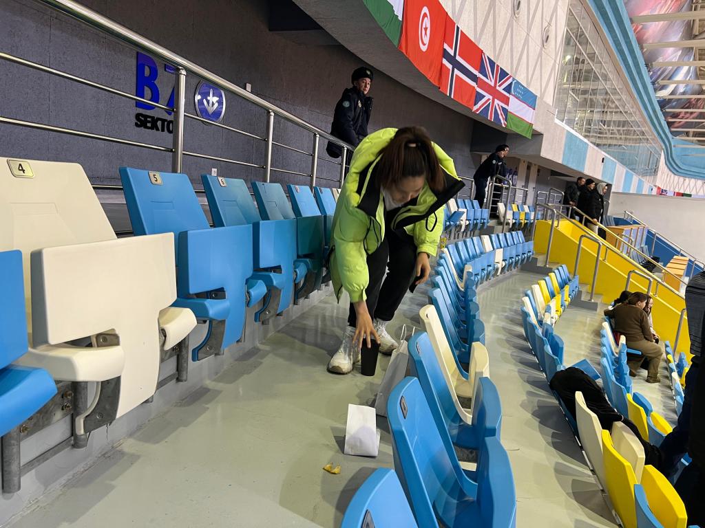 После победного завершения матча Национальной сборной Казахстана по футзалу за выход на ЕВРО-2026 со счетом 7:3 в пользу Казахстанской команды болельщики снова проявили ответственность и убрали трибуны стадиона, сообщает Optimism.kz.