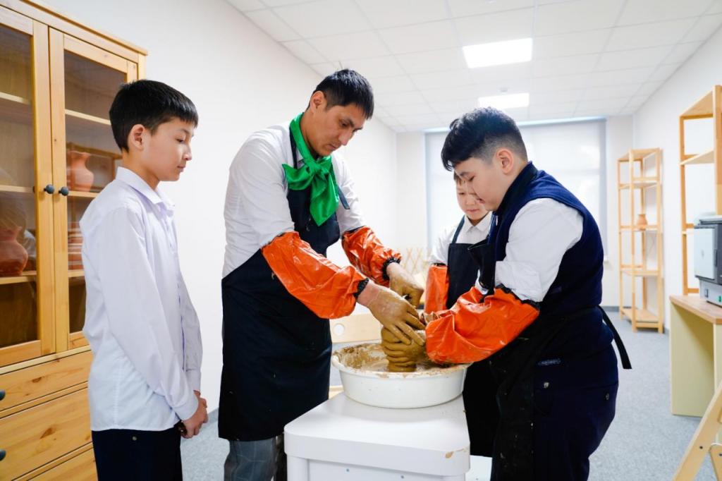 «Каждый класс оснащен передовыми технологиями, учебными пособиями, необходимыми во время урока. Это односменная школа. Здесь учащиеся посещают кружки, которые им нравятся днем, и проводят время весело и с пользой. Здесь есть хореографический зал, телестудия, специальный кабинет для записи подкастов, библиотека, читальный зал и многое другое. Также для повышения интереса учащихся к технике оборудована лаборатория робототехники, STEM. А каждую пятницу мы проводим для школьников кружки по борьбе тогызкумалак, қазақша күресі», — рассказала она.