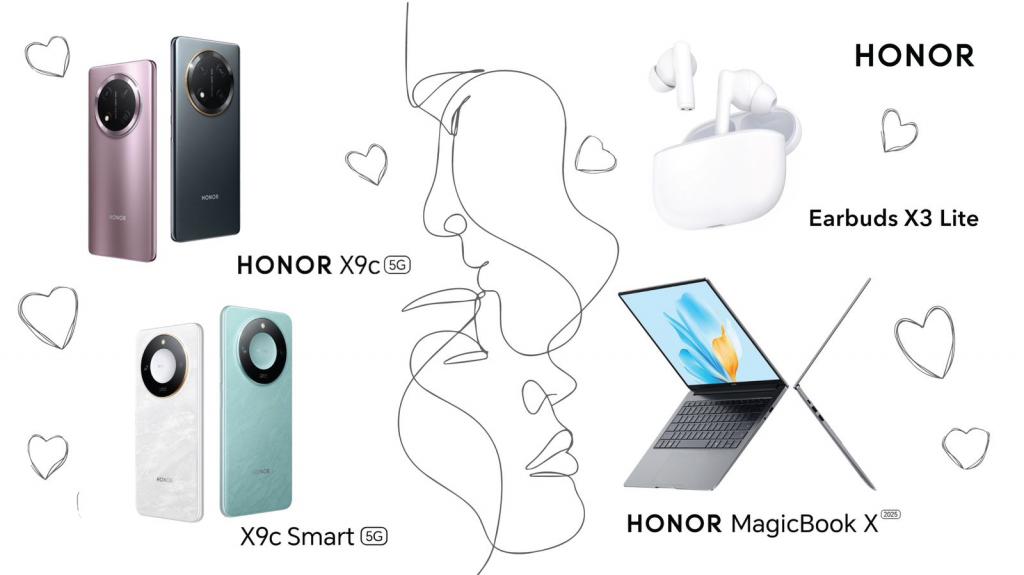 В День святого Валентина важно не только говорить о чувствах, но и проявлять их в заботе о близких. Бренд HONOR предлагает идеальные подарки, которые помогут выразить любовь и внимание — смартфоны HONOR X9c, HONOR X9c Smart, ноутбук HONOR MagicBook X и беспроводные наушники HONOR CHOICE Earbuds X7 Lite.