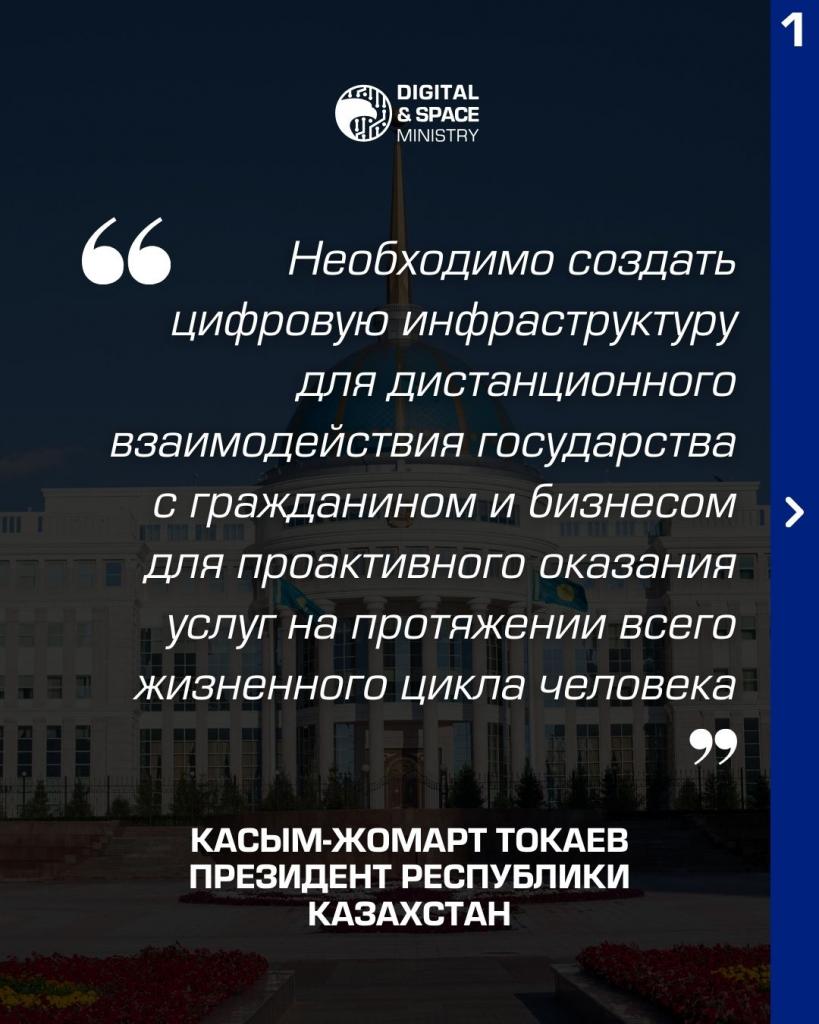«С помощью цифровых технологий мы намерены максимально облегчить повседневную жизнь граждан и добиться равенства возможностей для всех. Для этого предстоит перейти к качественно новому формату цифровизации госуправления. Его суть заключается в том, что главный фокус государственной политики сосредоточен на человеке, его нуждах и интересах», – Президент РК Касым-Жомарт Токаев.