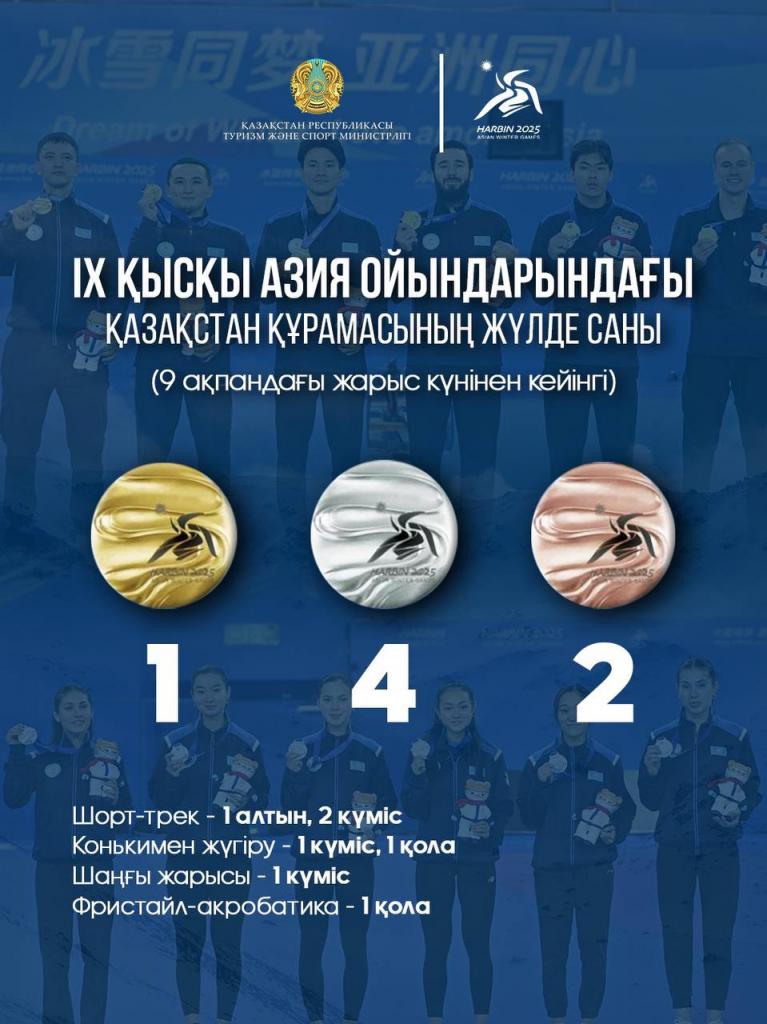IX қысқы Азиада: 9 ақпандағы жарыс күнінен кейін Қазақстан құрамасының қоржынында 1 алтын, 4 күміс, 2 қола медаль бар