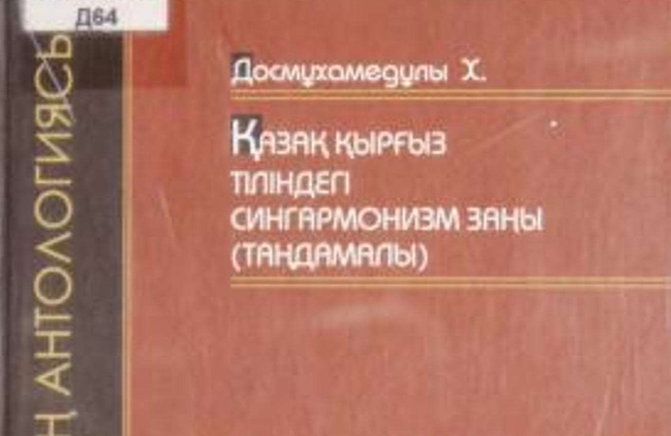 (Суретте Халел Досмұхамедұлының “Қазақ қырғыз тіліндегі сингармонизм заңы” кітабының мұқабасы бейнеленген.)
